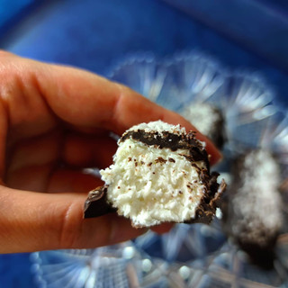Mescolare lo yogurt/ricotta con il cocco e il dolcificante.